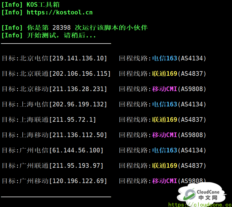 CloudCone圣路易斯VPS - 三网回程路由测试