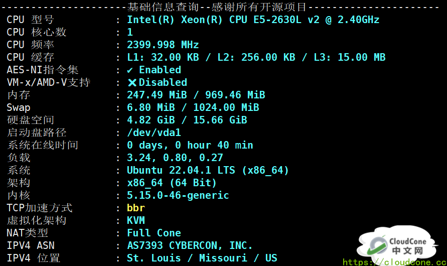 本次全面公开CloudCone圣路易斯VPS实测信息,聚焦核心使用维度展开测试,涵盖节点性能、网络稳定性、带宽速率及跨境延迟等关键指标。希望能为大家提供精准参考依据。