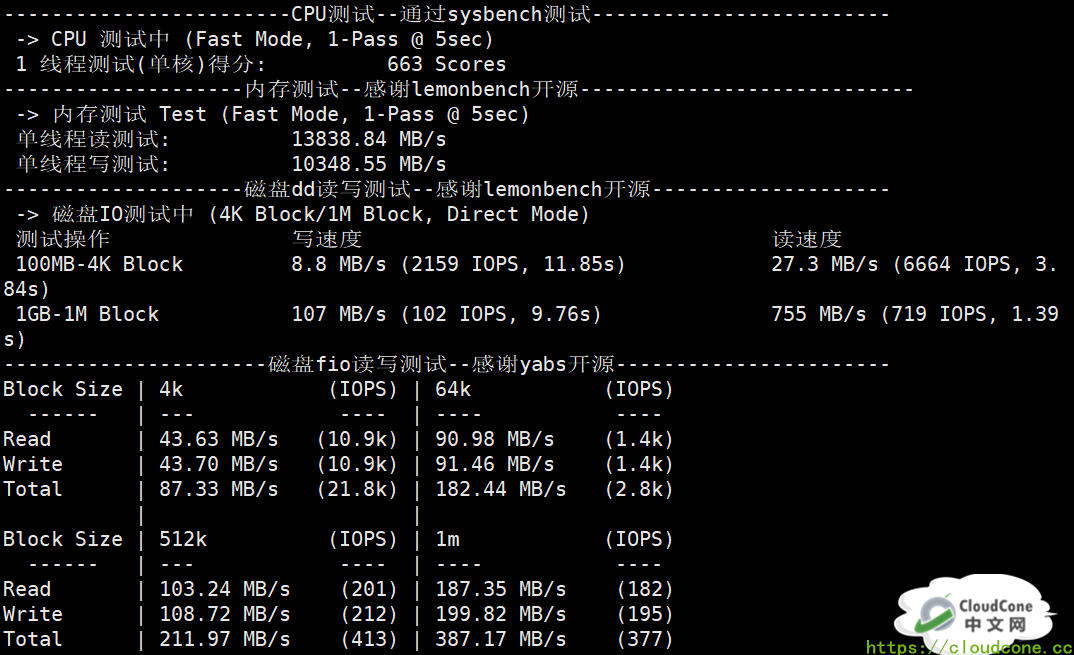CloudCone圣路易斯VPS - CPU、内存、磁盘等读写测试